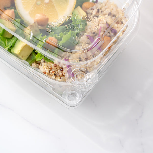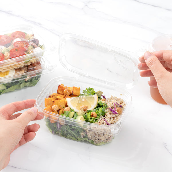 Equipped with hinged lids, these clear containers create a tight seal for a secure way to take food on the go. Avoid accidental spills during your commute!