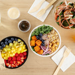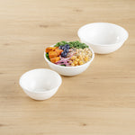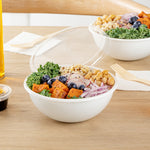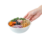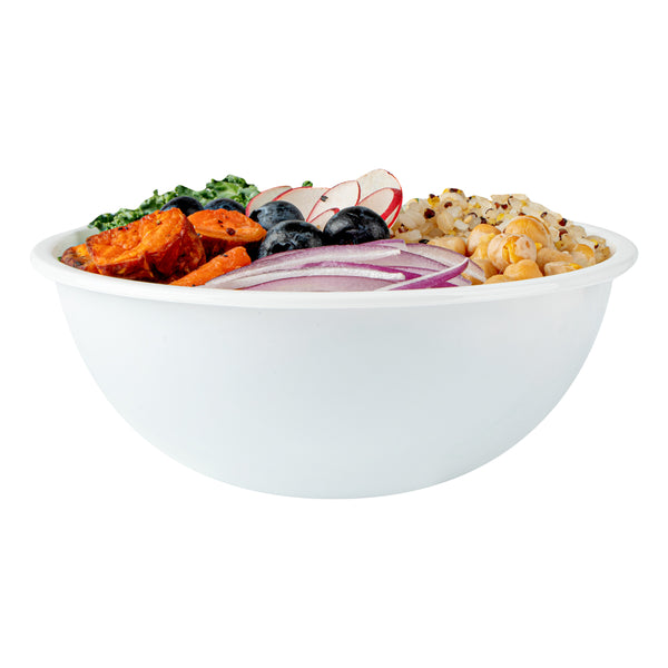 Enhance the look of salads with our Tamper Tek 18-ounce Round White Plastic Salad Bowls. Featuring a classic round shape and sophisticated white finish, these disposable salad bowls gradually draw guests’ eyes to your culinary creations. Made from high-quality plastic, these 18-ounce bowls feature a strong base and sturdy walls that expertly contain acai bowls, egg salads, caesar salads, and other dishes. Pair these recyclable serving bowls with our Tamper Tek compatible flat lids (SKU: RWP0206C) to keep meals safe during transport. These white salad bowls are conveniently disposable and recyclable to speed up your end-of-day cleaning process. Measuring 6 inches in diameter and 2.5 inches in height, these plastic bowls can contain up to 17.6 ounces. Shipped in a 200 count box. Flat lids are available and sold separately.