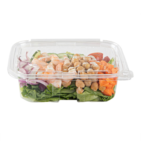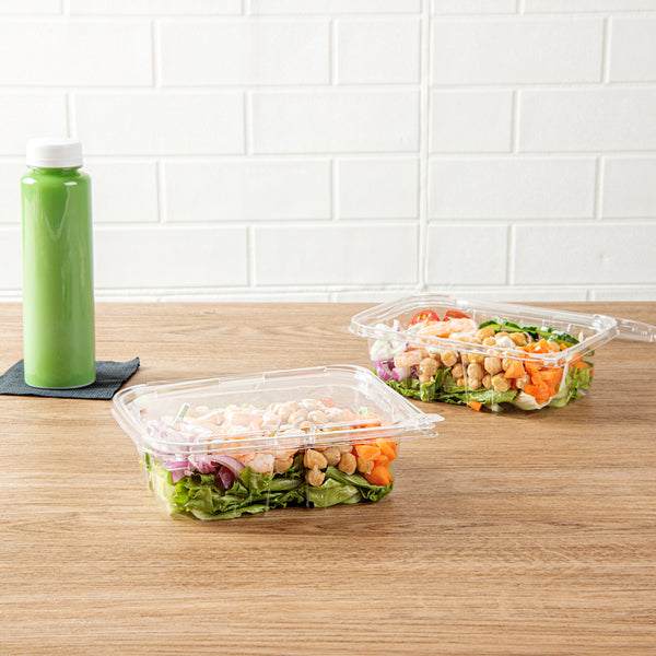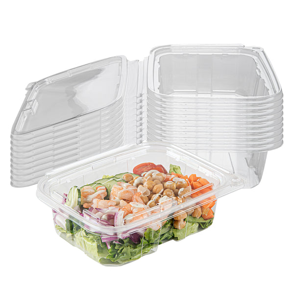 These disposable hinged food containers come in round, rectangle, and square shapes with 12, 20, 24, and 48-ounce capacities. A size for every need!