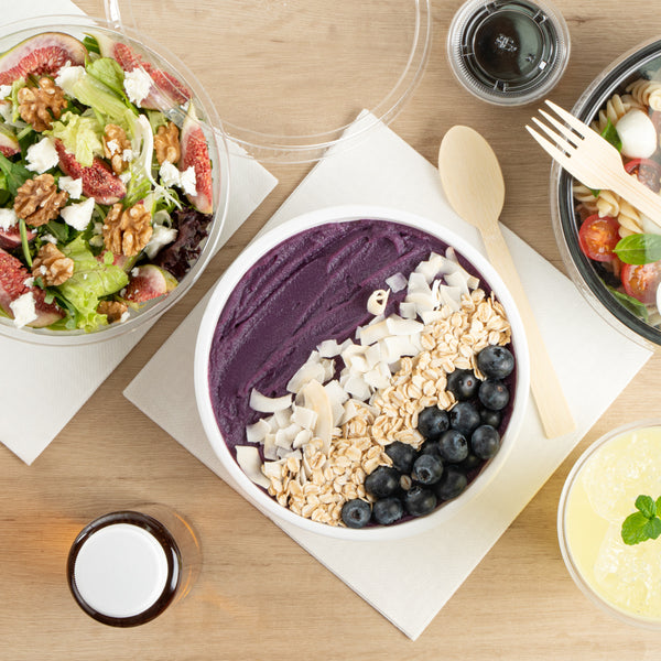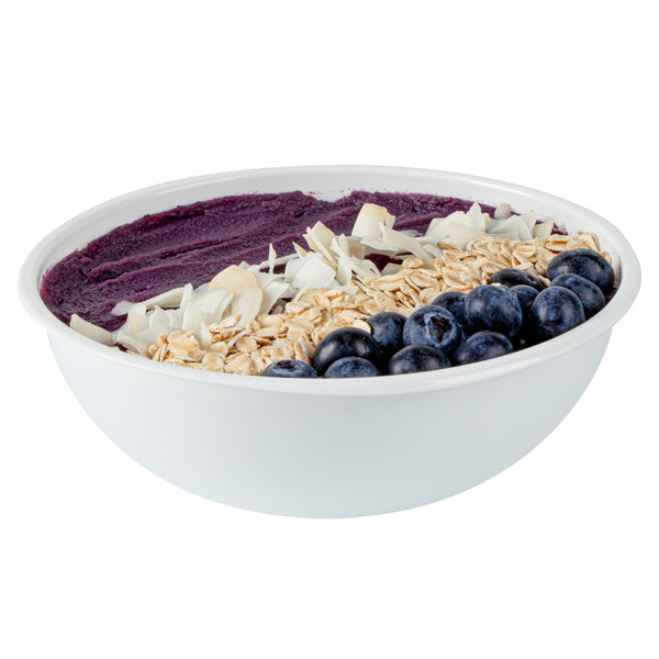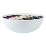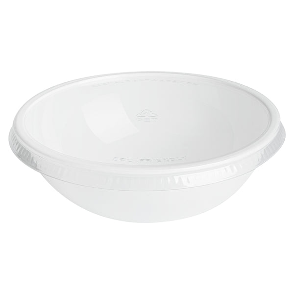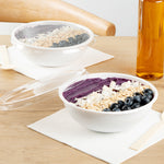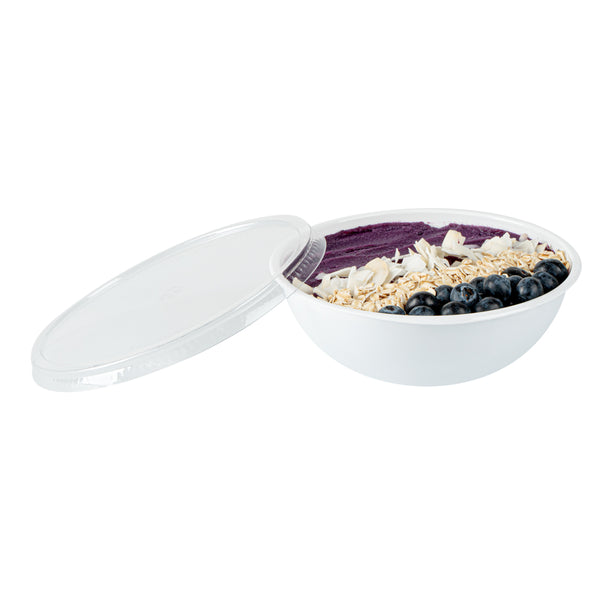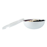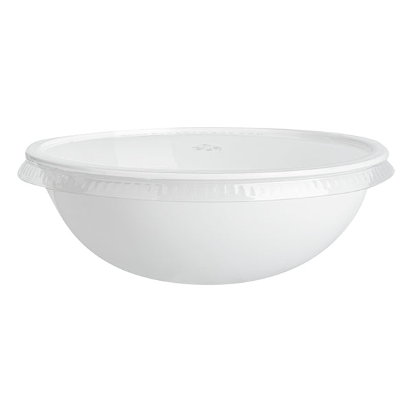 Expertly serve your salads with our Tamper Tek 21-ounce Round White Plastic Salad Bowls. Designed with a white finish, these serving bowls draw customers’ eyes on your colorful fruit salads, cereals, or puddings. Equipped with strong walls, steady base, and reinforced rim, these white bowls securely contain your fare to prevent messy spills. Constructed from premium plastic, these salad bowls are recyclable for a quick clean up after a busy day at your restaurant or catered event. Seal these plastic cereal bowls with our Tamper Tek clear lids to showcase your take out orders. These 21-ounce plastic bowls measure 6.75 inches in diameter and are 2.5 inches in height. Sold in a 50 count box. Lids (SKU: RWP0208C) are available and sold separately.