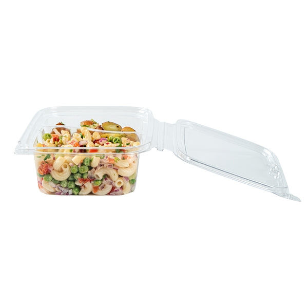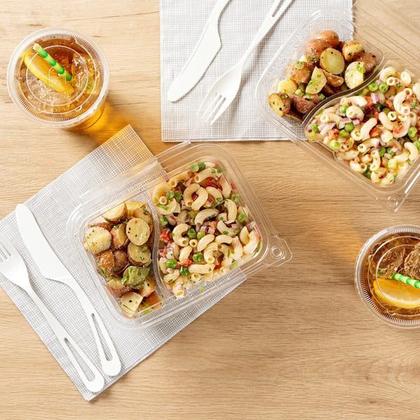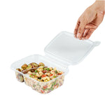 The tamper-evident design of these take out containers protects the food inside from getting tampered with. The hinge breaks off once opened to alert you of possible tampering.