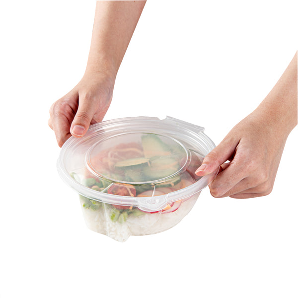 These plastic bowls with lids can be used for meal, salads, or snack takeaways. Multi-use ready!