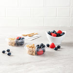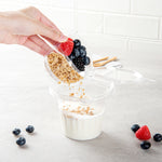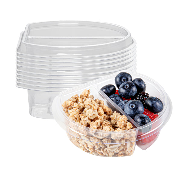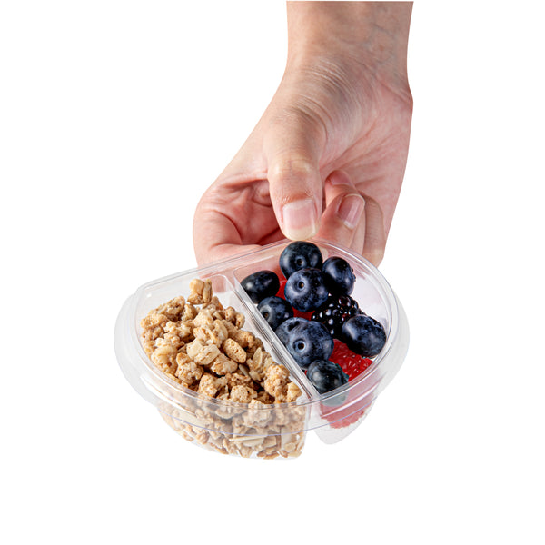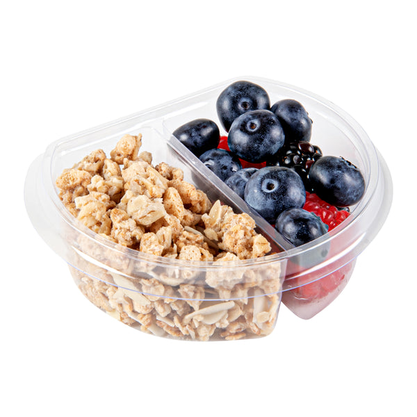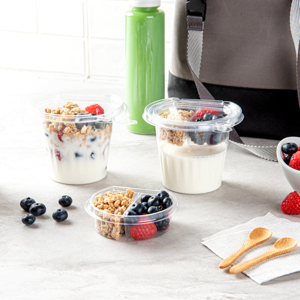 These insert trays with two compartments perfectly fit inside our 11-ounce, flat-sided parfait cups to carry more toppings. Optimize to-go desserts!