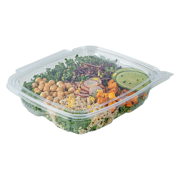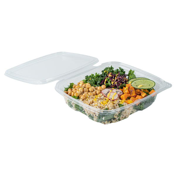 These disposable hinged food containers come in round, rectangle, and square shapes with 12, 20, 24, and 48-ounce capacities. A size for every need!