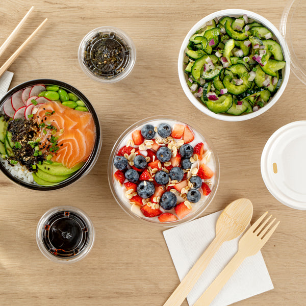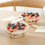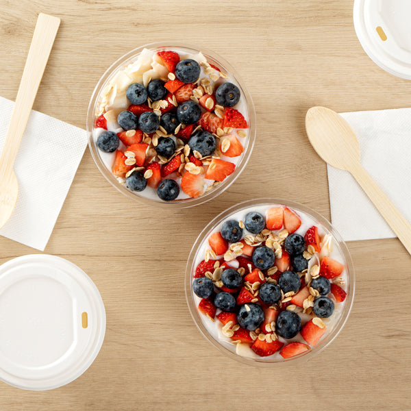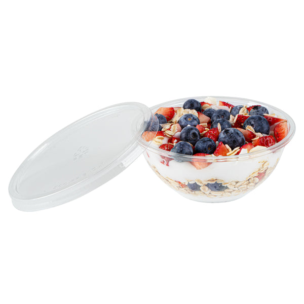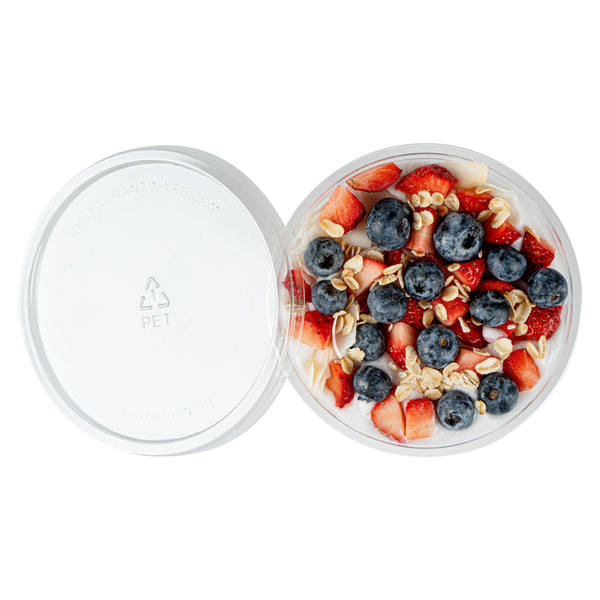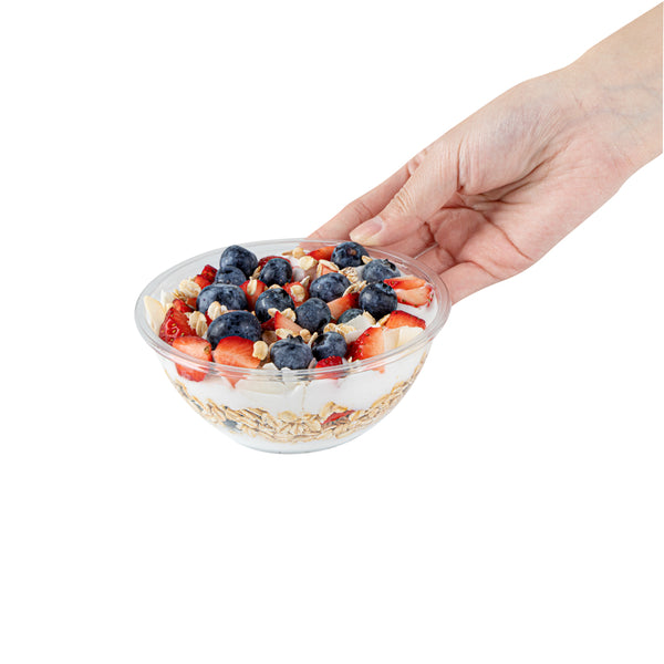 Present salads elegantly with our Tamper Tek 7-ounce Round Clear Plastic Salad Bowls. Constructed from high-quality plastic, these salad bowls are sturdy and ideal for showcasing wet, dry, and cold foods. These round bowls have a 7-ounce capacity, offering a spacious area to house a variety of tempting treats. The rolled rim design of these snack bowls reduces the chance of accidental spills and messes. These dessert bowls flaunt an attractive clear finish that exudes refined sophistication, enhancing the overall dining ambiance. For efficient storage in your eatery, these clear bowls are easily stackable. These disposable bowls can be paired with our Tamper Tek matching clear lids (SKU: RWP0204C) for a mess-free take out solution. Measuring 5 inches in diameter by 1.75 inches in height, these take out bowls can contain up to 7 ounces. Sold in a 200 count box. Lids are available and sold separately.