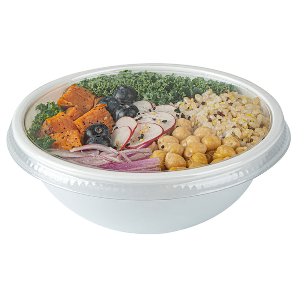 Secure take out orders at your foodservice establishment using our Tamper Tek Round Clear Plastic Lids. Featuring a clear finish, these plastic lids provide customers with a full view of your fresh fruit salads, ravioli, or acai bowls. Made from high-quality plastic, these clear lids are built to be crack-resistant and are recyclable for fast and hassle-free cleanup after service hours. Pair any of our Tamper Tek 18-ounce serving bowls with lids to prevent messes during delivery services and keep meals fresher for longer (SKU: RWP0205B, RWP0205C, and RWP0205W). Measuring 6.3 inches in diameter, these clear flat lids are conveniently stackable for space-efficient storage in your commercial kitchen. Shipped in a 200 count box. Plastic salad bowls are available and sold separately.