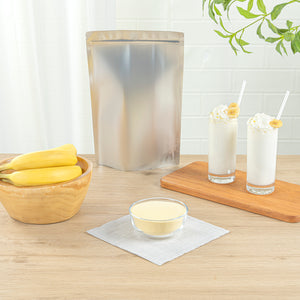 Maintain freshness and flavor with long-lasting banana drink mix. Tea Tek Banana Drink Mix offers an 18-month shelf life that boosts inventory management, ensuring your cafe or restaurant always has a reliable supply of banana flavor at hand. This banana dessert powder is versatile, enhancing smoothies, milk teas, and various blended drinks, adding a rich banana taste to your menu offerings. Its resealable design maintains the quality of the powder after opening, minimizing waste and cost while supporting efficient operations. With dimensions of 8.66 inches in width and a weight of 35.2 ounces, this easy-to-mix formulation simplifies preparation, saving time in busy foodservice environments. Made from an edible material, it is ideal for infusing banana flavor into beverages and desserts. Enhance your menu variety and customer satisfaction with this banana smoothie mix. Each order includes 1 Tea Tek Banana Drink Mix.