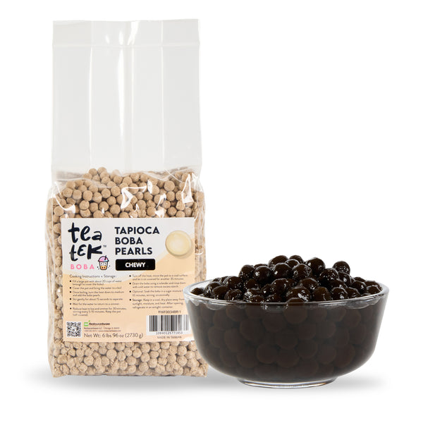 Discover the delightful experience of our Tea Tek 6-pound Tapioca Boba Pearls, perfect for any bubble tea enthusiast. With a chewy inside and a soft texture on the outside, these tapioca pearls elevate your beverages to a new level of enjoyment. These tapioca boba pearls, measuring 3.18 mm, are ideal for bubble tea, smoothies, or other beverages. Perfectly versatile, these tapioca balls can be added to a variety of culinary creations, enhancing their appeal. Designed to provide a consistent and delightful chewiness, these tapioca bubbles are a must-have for any foodservice establishment. With a total capacity of 6-pound, these boba pearls meet the high demands of busy cafes and restaurants. Each boba pearls container offers a substantial capacity of 6 pounds. Sold in a 6 count box.