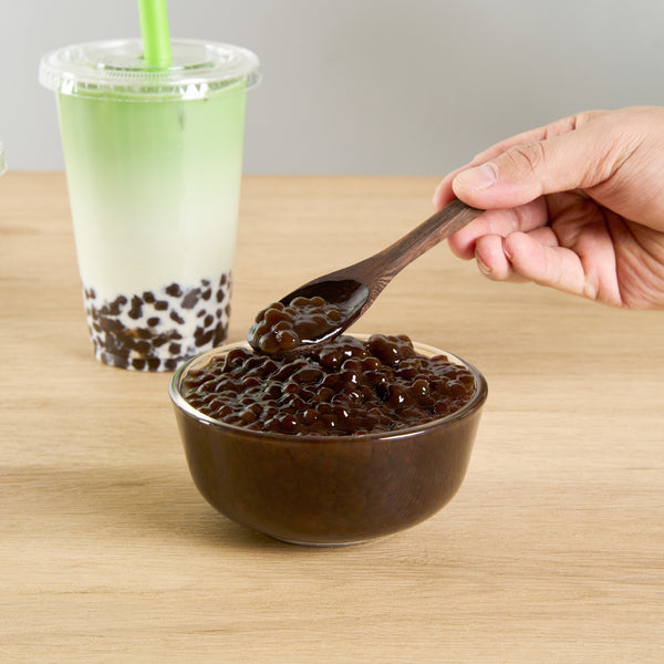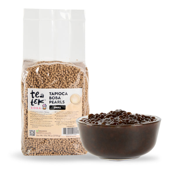 Reduce prep time with quick-cooking boba pearls. Tea Tek Small-Sized Boba Pearls feature a compact size that facilitates rapid cooking, optimizing efficiency in busy bubble tea shops. Made from cassava root starch, these pearls provide an authentic chewy texture, enhancing the traditional bubble tea experience with chewy tapioca balls that patrons crave. The included cooking instructions ensure precise preparation for consistent results, while the versatile brown color complements a variety of dessert beverages, expanding menu options for cafes and catering services. With a 6-pound bulk packaging, these bubble tea pearls offer cost-effective inventory management, ideal for high-volume beverage service. The pearls' ability to hold up to six hours allows extended serving time, ensuring they remain fresh during peak periods. Enhance your bubble tea offerings with these versatile boba pearls. Each order includes 1 Tea Tek Small-Sized Boba Pearls.
