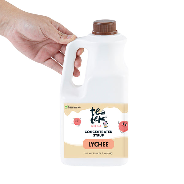 Enhance your beverages with our Tea Tek 64-fluid ounce Lychee Concentrated Syrups, the perfect choice for adding a burst of lychee flavor to your creations. These lychee drink syrups are crafted with real fruit ingredients, ensuring an authentic and delightful taste in every drop. You can easily incorporate these lychee syrups into your herb teas, slushies, smoothies, frozen yogurt, or desserts for a delicious and refreshing twist. To maintain the quality of these fruit syrups, store them in a cool, dry area away from direct sunlight, heat, and moisture. With a generous 64-ounce capacity, these flavor syrups allow for extensive use in various foodservice applications. Measuring 4.5 inches in length by 3.5 inches in width by 10 inches in height, these fruit flavor syrups are conveniently sized for easy storage and handling. Sold in a 6 count box.