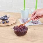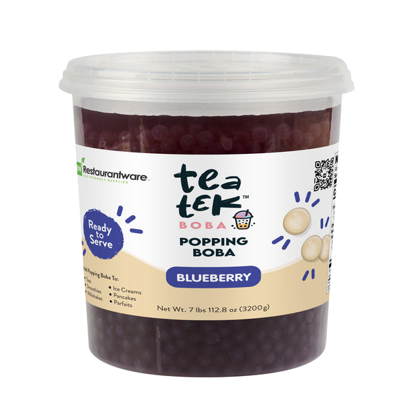 Enhance your menu with vibrant and flavorful toppings. Tea Tek Blueberry Popping Boba offers a burst of blueberry flavor that instantly elevates beverages and desserts, delighting customers with every bite. This blueberry popping boba is ready-to-use, saving valuable preparation time and ensuring quick service during peak hours. Packaged in a hassle-free resealable jar, it maintains freshness, extending the shelf life for efficient inventory management. Each serving contains only 25 calories, perfect for health-conscious offerings, while the vegan and dairy-free composition caters to diverse dietary needs. With dimensions of 7.19 inches in length, this edible blue boba can transform any dish into a creative and trendy masterpiece. Add these bubble tea pearls to drinks or as a topping for frozen treats to diversify your offerings and captivate guests. Each order includes 1 Tea Tek Blueberry Popping Boba.