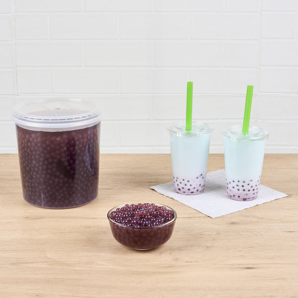Enhance your beverages and desserts with our Tea Tek 7-pound Blueberry Popping Boba. These popping boba balls require no cooking, making it effortless to add a burst of texture and rich blueberry flavor to your culinary creations. Packaged in a resealable jar, these blueberry boba balls allow for hassle-free storage and use. Perfect for various dietary needs, these popping pearls are vegan, with no gluten or dairy. Transform your foodservice offerings with the versatility and deliciousness of these blueberry boba pearls. These popping pearls come in a 7-pound capacity to meet high-volume demands. Sold in a 4 count box.