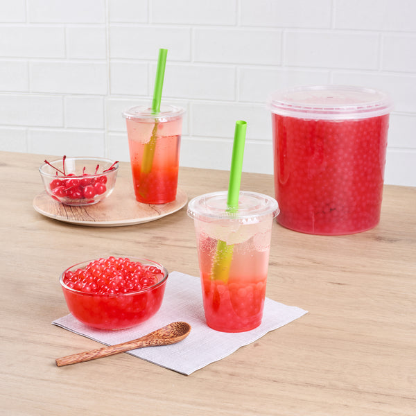 Elevate your menu offerings with versatile popping boba. Tea Tek Resealable Popping Boba infuses beverages and desserts with a dynamic burst of cherry flavor, enhancing your creations with a sweet, fruity taste that captivates a broad customer base. Packaged in a resealable jar, this popping boba ensures freshness and extends shelf life, an essential feature for high-volume establishments aiming to minimize waste and maintain quality. At 7.19 inches in width, this vegan and dairy-free treat caters to diverse dietary preferences, broadening your appeal and accommodating more customers. The rich cherry popping pearls transform bubble tea and desserts into vibrant, eye-catching delights, making them irresistible to patrons seeking an interactive dining experience. With the added benefit of being a ready-to-use product, it streamlines preparation, allowing staff to efficiently add bubble tea pearls to any dish or drink. Each order includes 1 Tea Tek Resealable Popping Boba.