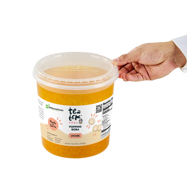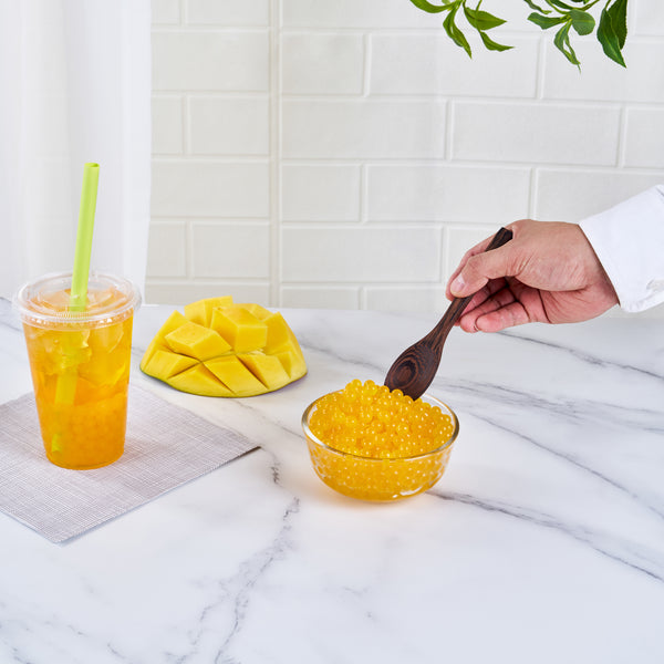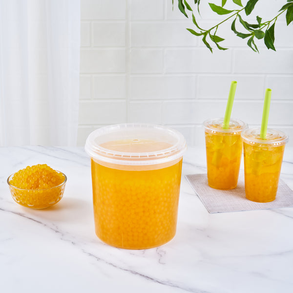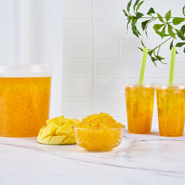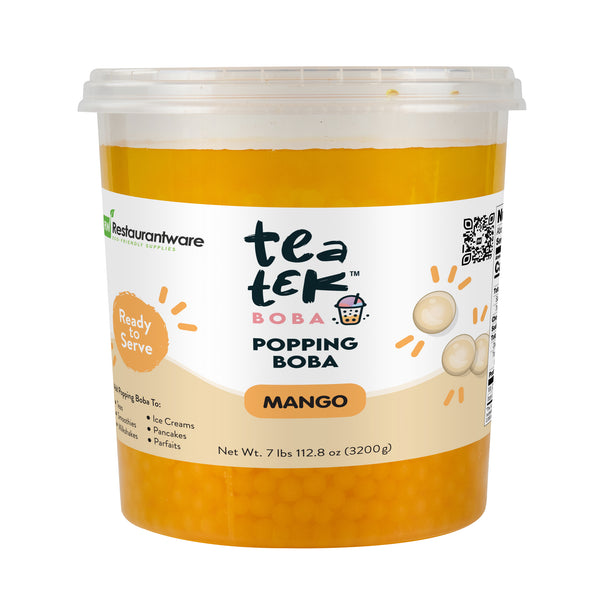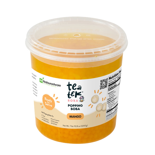 Transform your culinary creations with our Tea Tek 7-pound Mango Popping Boba. These vibrant mango popping boba require no cooking, making it effortless to infuse your drinks and desserts with a burst of texture and rich taste. Plus, our versatile popping boba is vegan, with no gluten or dairy, accommodating various dietary preferences and needs. Packaged in a hassle-free resealable jar, these popping pearls make storage and usage incredibly convenient. Elevate your menu with these delicious mango bursting boba that will delight customers. These popping pearls come in a generous 7-pound capacity per jar. Sold in a 4 count box.