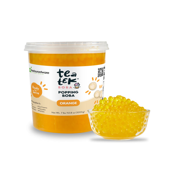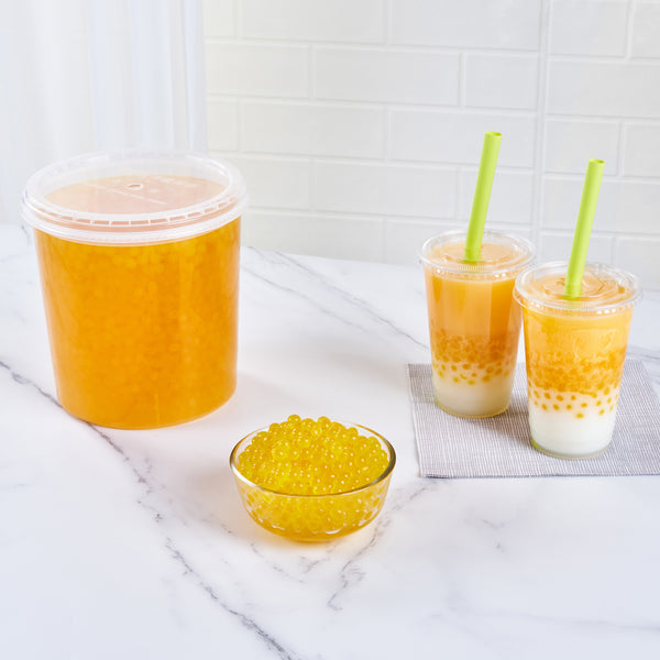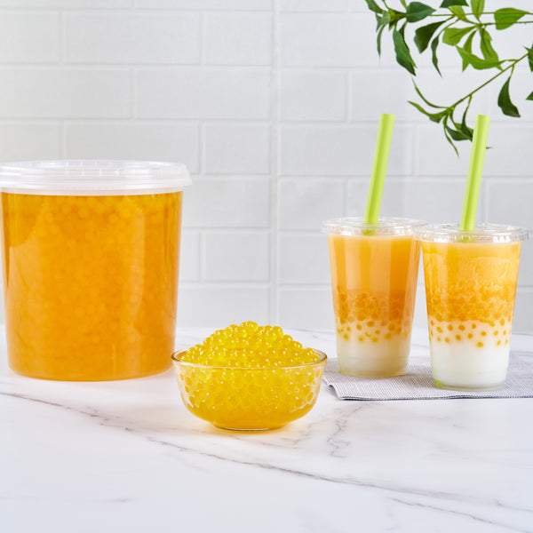 Elevate your menu with vibrant and flavorful popping boba. Tea Tek Yellow Popping Boba features a resealable jar that maintains freshness and extends shelf life, enhancing operational efficiency by reducing waste and reordering frequency. These popping pearls for cocktails and desserts add a creative flair, transforming your drinks and desserts into eye-catching masterpieces that captivate diners. With a vegan and dairy-free formula, these popping boba pearls cater to diverse dietary preferences, making them a versatile choice for bubble tea shops, frozen yogurt stores, and bars. Measuring 7.19 inches in length, these edible pearls are ready-to-use, eliminating preparation time and allowing quick incorporation into your offerings. Infuse your beverages and desserts with the rich flavor of these bubble tea pearls to delight customers and encourage repeat business. Each order includes 1 Tea Tek Yellow Popping Boba.