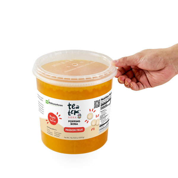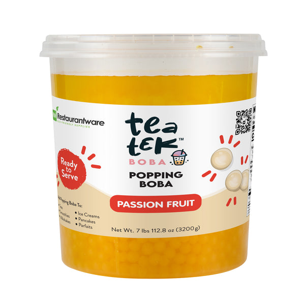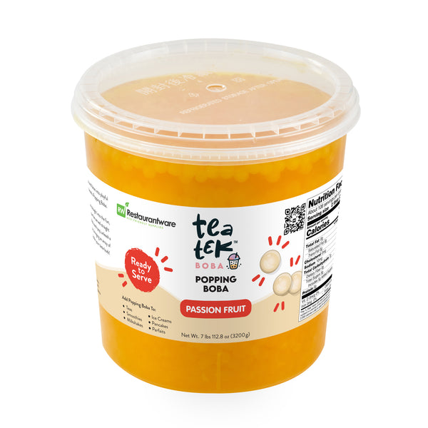 Elevate your menu with vibrant and flavorful popping pearls. Tea Tek Resealable Popping Pearls infuse your beverages and desserts with a rich, tropical passion fruit taste, captivating customers with every sip and bite. These bubble tea pearls come in a ready-to-use format, saving valuable preparation time and ensuring efficient service during busy hours. The bursting fruit pearls are not only delicious but also vegan and dairy-free, appealing to a wide range of dietary preferences. Housed in a resealable jar, these pearls maintain freshness and extend shelf life, minimizing waste and ensuring consistent quality. Measuring 7.19 inches in length, the pearls' versatile application enhances bubble teas, smoothies, and more, adding a trendy visual appeal that attracts patrons. Add these popping pearls to your offerings today to diversify your menu and impress your clientele. Each order includes 1 Tea Tek Resealable Popping Pearls.