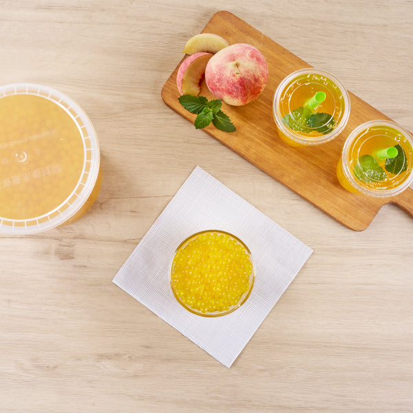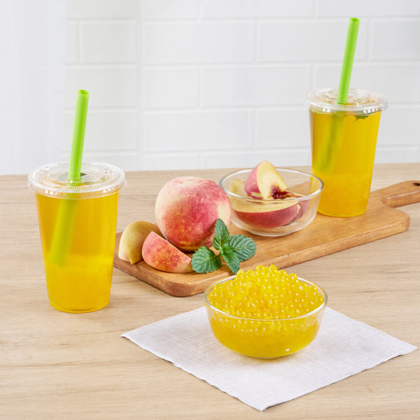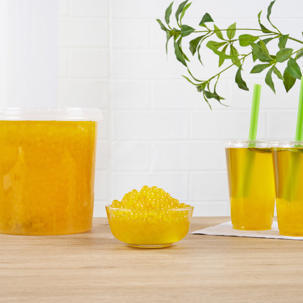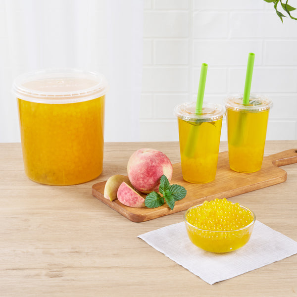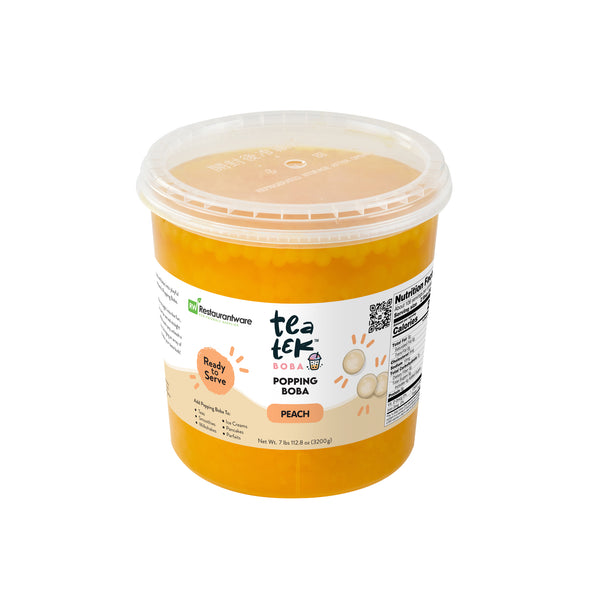 Delight customers with our Tea Tek 7-pound Popping Boba in peach flavor, perfect for adding a burst of fun to your beverages and desserts. Enjoy the convenience of our popping boba, stored in a hassle-free resealable jar that ensures freshness and extends shelf life. These bursting boba pearls require no cooking, so you can effortlessly incorporate them into your culinary masterpieces. These popping pearls will elevate your creations, making them look more appealing and trendy with every serving. Each boba jar offer a substantial capacity of 7 pounds. Sold in a 4 count box.