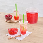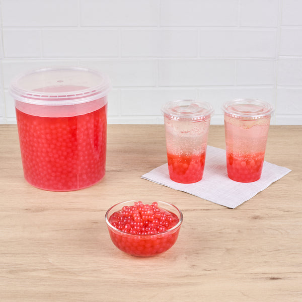 Elevate your menu with vibrant, tangy Pomegranate Pearls. Tea Tek Resealable Popping Boba adds a sweet and tangy burst to beverages and desserts, enhancing customer satisfaction with its pomegranate flavor. These bubble tea pearls feature a resealable jar that maintains freshness and extends shelf life, making them perfect for high-volume establishments. Each serving of this popping boba contains only 25 calories, supporting healthy menu options for health-conscious customers. This vegan and dairy-free product broadens customer dietary choices, ensuring inclusivity in your offerings. The 7-pound bulk packaging is ideal for reducing reordering frequency and ensures a consistent supply, while its ready-to-use format saves preparation time, allowing staff to serve efficiently. Measuring 7.19 inches in length, its eye-catching red appearance enhances the visual appeal of drinks, attracting customers and boosting sales. Each order includes 1 Tea Tek Resealable Popping Boba.