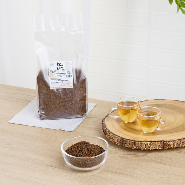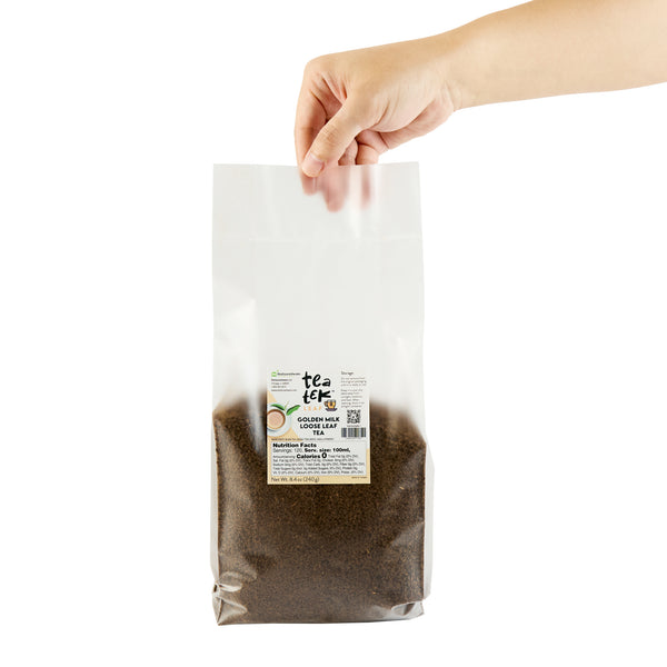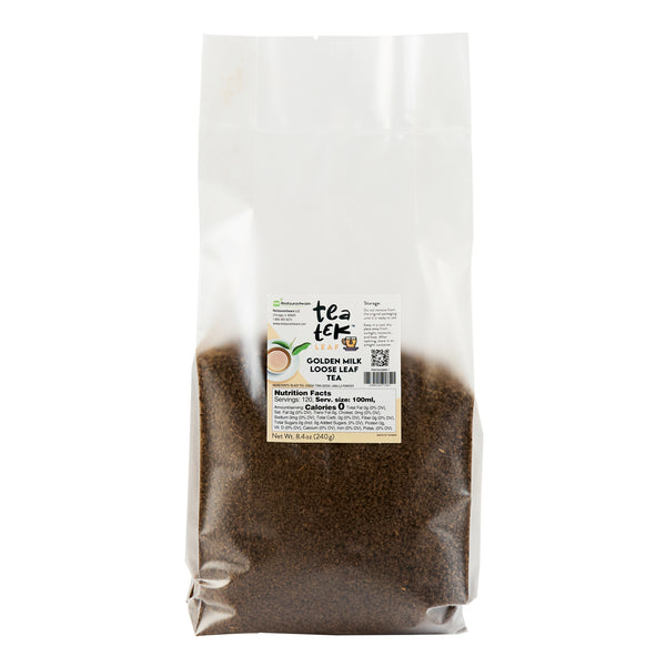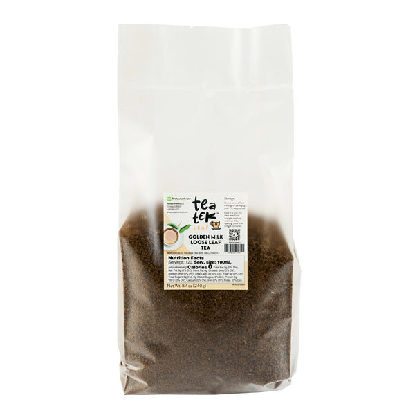 Elevate your beverage offerings with our Tea Tek 8.4-ounce Golden Milk Loose Leaf Tea, designed to provide a premium and versatile tea experience. These best loose leaf tea feature a bold flavor, made from loose tea leaves that deliver a pure and robust taste. Perfect for crafting both hot and cold drinks, this loose leaf tea is also ideal for mixing with syrups and milk to create customized beverages. Infused with black tea leaves, cassia tora seeds, and vanilla powder, these milk tea leaves bring out rich and bold flavors in every sip. This unique blend of fresh tea leaves is specifically designed for tea lattes and milk tea, making it the top choice for enhancing any drink. Whether served hot, cold, or blended with fruits, these tea leaves for milk tea provide a signature taste that stands out. Each boba pearls container offers a substantial capacity of 8.4 pounds. Sold in a 25 count box.