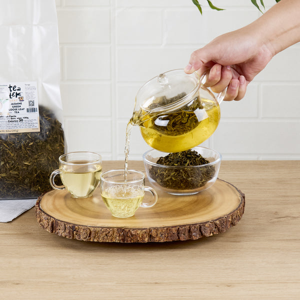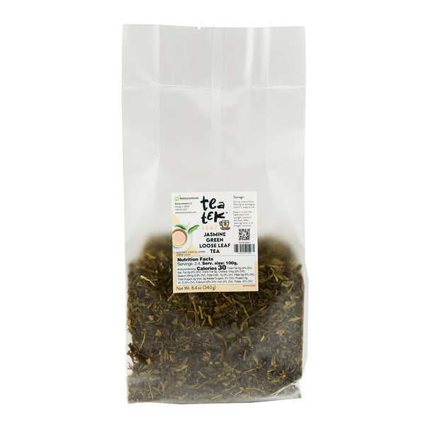 Enhance your tea service with an aromatic experience. Tea Tek Jasmine Green Loose Leaf Tea, featuring premium jasmine green tea leaves, delivers a delicate floral aroma and smooth flavor, perfect for creating an inviting ambiance in your café. The unique overnight fragrance absorption ensures your tea offerings captivate customers, enriching your beverage menu with every serving. Packaged in a convenient 8.4-ounce resealable bag, this jasmine tea not only maintains its freshness but also provides ample quantity for versatile use, whether you're serving hot cups of tea or crafting a refreshing bubble tea mix. With dimensions of 17.7 inches in height, this edible loose leaf tea is crafted from spring-harvested leaves, ensuring premium flavor retention. Elevate your patrons’ tea-drinking experience and keep them coming back for more with this exceptional jasmine green tea blend. Each order includes 1 Tea Tek Jasmine Green Loose Leaf Tea.