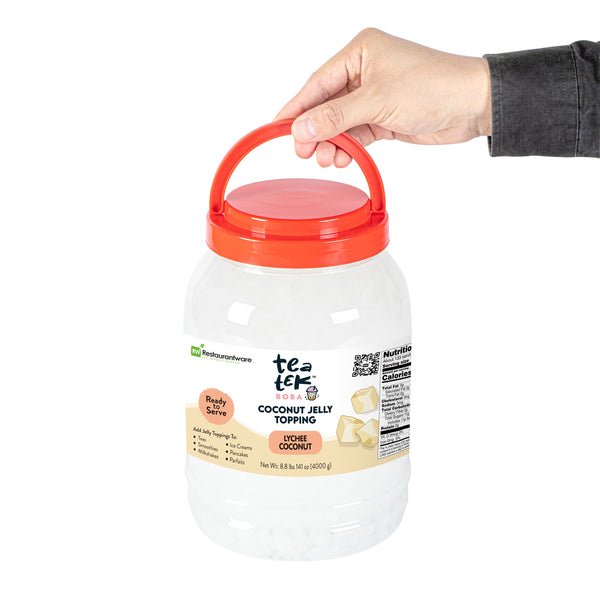 Enhance your culinary creations with lychee coconut jelly. Tea Tek Lychee Coconut Jelly offers a unique lychee coconut flavor that elevates desserts and beverages, ensuring an exotic taste that delights customers. Its no cooking required feature significantly reduces kitchen preparation time, making it ideal for high-volume establishments. This versatile jelly for boba tea is perfect for a variety of applications, from topping frozen treats to adding a burst of flavor to bubble teas and smoothies, facilitated by its convenient ready-to-use sealed packaging. With a height of 10.3 inches and an edible material composition, it is low in cholesterol, supporting healthier menu options without compromising on taste. Encourage creativity in your menu offerings with this lychee boba topping, ideal for innovative foodservice professionals. Each order includes 1 Tea Tek Lychee Coconut Jelly.