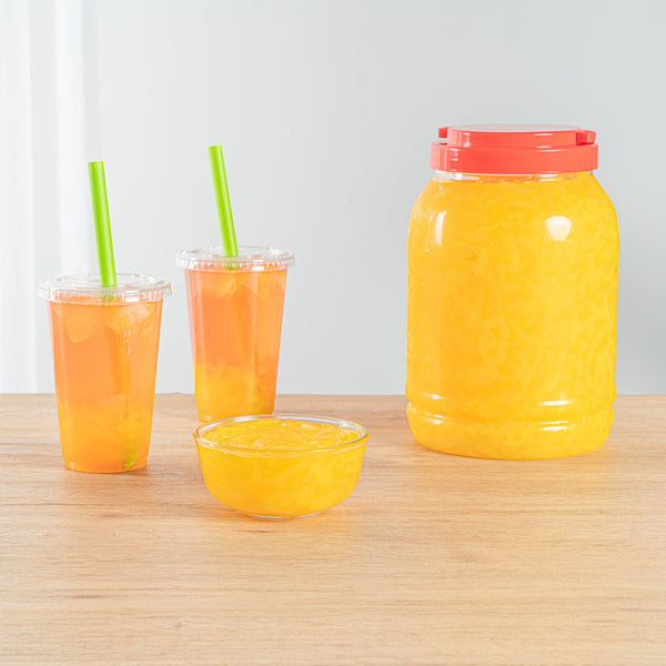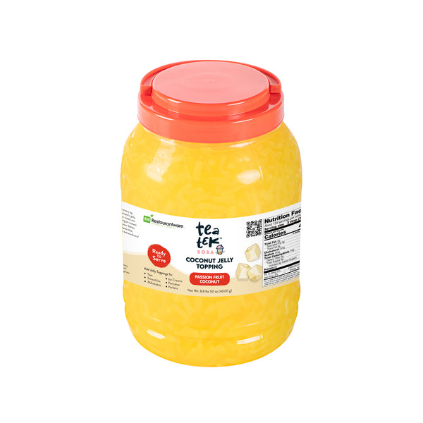 Enhance your beverages and desserts with our Tea Tek 8.8-pound Jelly Toppings in passion fruit coconut flavor. There is no cooking required, you can simply scoop, rinse, and enjoy this delicious jelly topping. These boba tea jelly toppings add a delightful layer of taste and texture to any drink or dessert. Ideal for a variety of beverages these jelly toppings enhance drinks like boba tea, mocktails, and smoothies. Each jelly topping jar offer a substantial capacity of 8.8 pounds. Sold in a 4 count box.