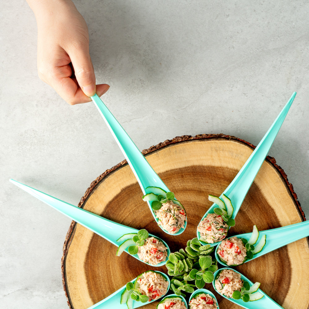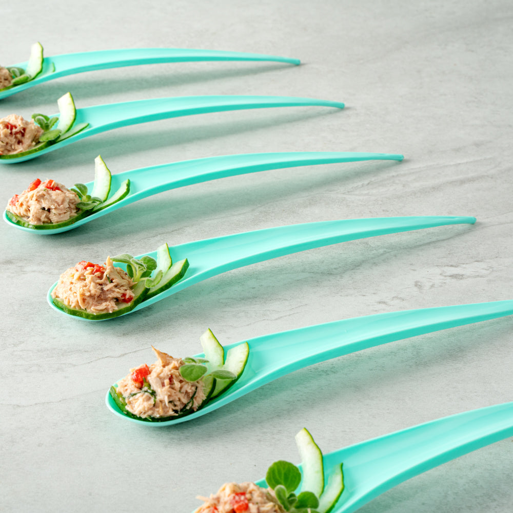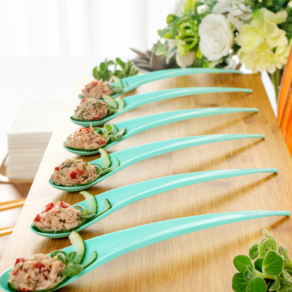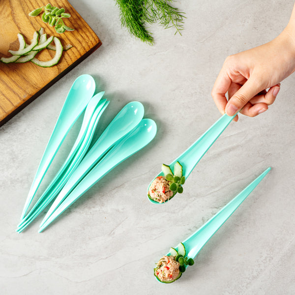 Measuring 8 inches long, these plastic spoons are ideal for all kinds of small bites. Easily serve small appetizers, samplers, or desserts!
