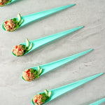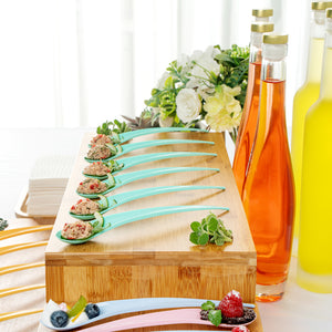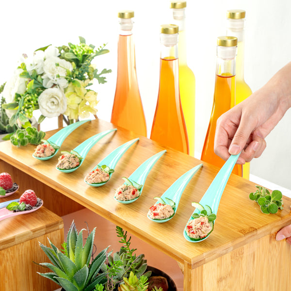 These appetizer spoons have a multi-purpose design, making them excellent for serving samplers at your foodservice establishment or displaying sweets on dessert tables. Great for birthday parties, buffets, and more!
