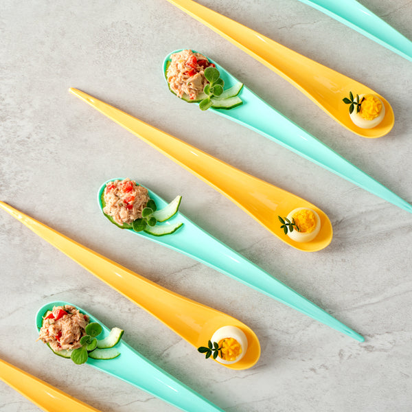 These disposable serving spoons come in a variety of colors to fit your personal style. Choose the ideal fit for your establishment or party!