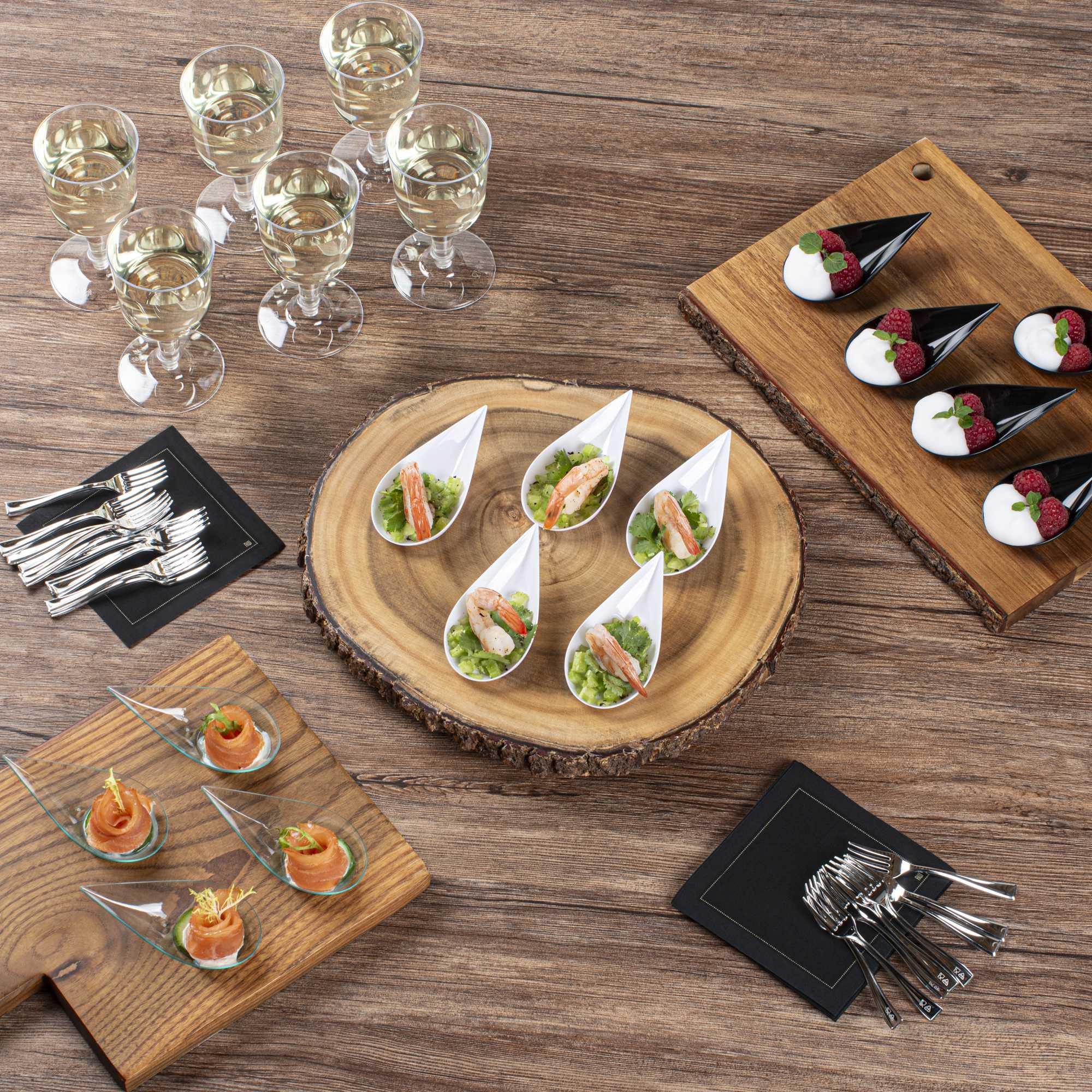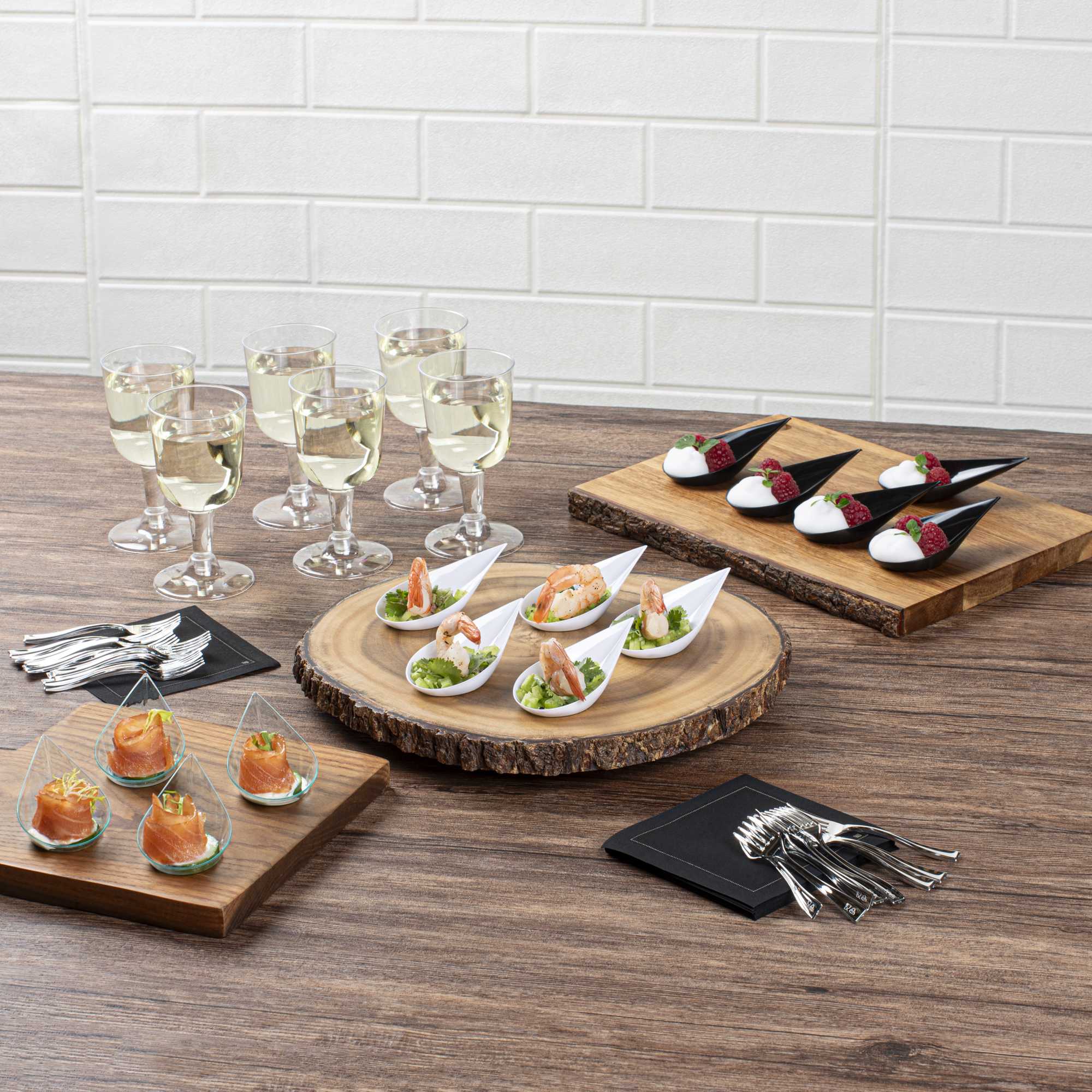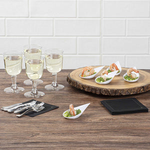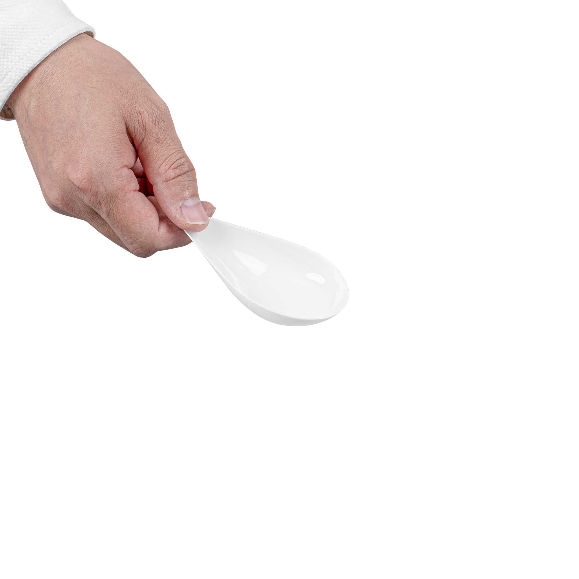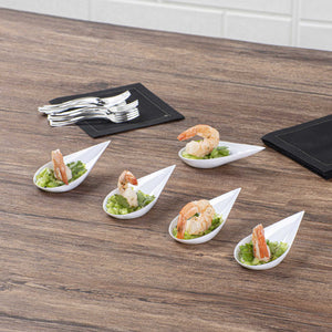 Transform your appetizer and dessert displays with our Mini Serve striking Teardrop White Plastic Spoons. Featuring a unique teardrop silhouette, these white plastic spoons add a dash of modern sophistication to any gathering. The curved basins of these plastic spoons adeptly showcase your delectable creations, while their clean white finish seamlessly coordinates with any venue or decor. Equipped with a flat base and an elegant pointed handle, these mini serving spoons are designed to bring cutting-edge refinement to your food presentations. Each of these plastic dessert spoons measures 4 inches in length by 2 inches wide and possesses a capacity of up to 1 ounce. Ideal for cocktail soirees, taste-testing events, and upscale catering functions, these sleek appetizer spoons are conveniently disposable for effortless cleanup. Sold in a 100 count box.