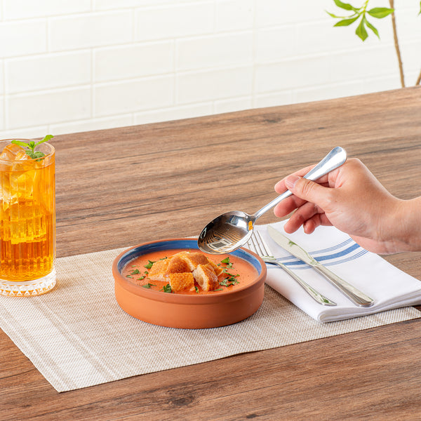 15 OZ TERRACOTTA CAZUELA BOWL - BLUE GLAZED INTERIOR, OVEN-SAFE