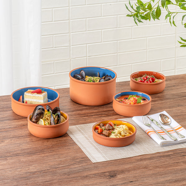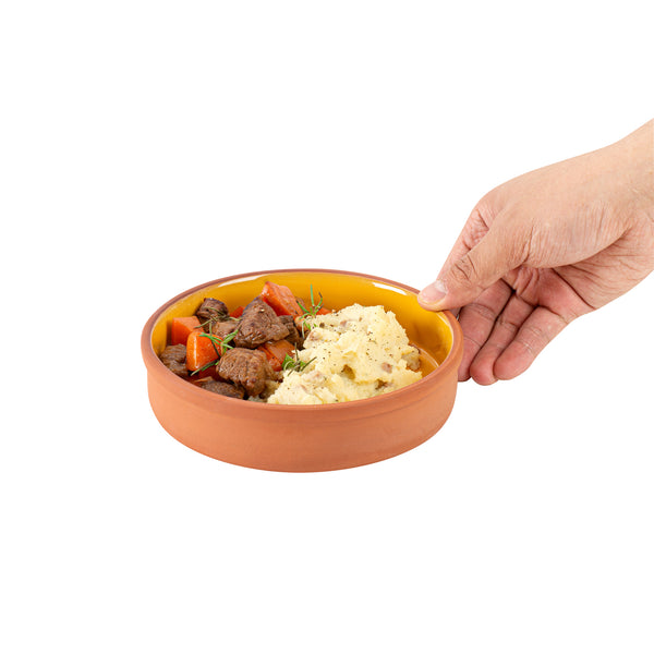15 OZ TERRACOTTA CAZUELA BOWL - YELLOW GLAZED INTERIOR, OVEN-SAFE