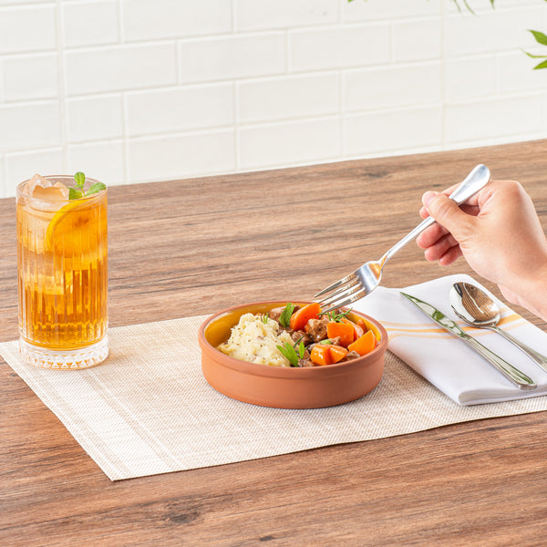 Enhance your dish presentation with vibrant tableware. The Terra Tek Heat-Retentive Cazuela Bowl features a yellow glazed interior, elevating the visual appeal of each meal served. This rustic terracotta bowl is designed with a dishwashable finish, allowing foodservice professionals to save time on post-meal cleaning tasks. Measuring 6.3 inches in diameter, it offers a generous 15-ounce capacity, making it ideal for serving individual portions of soups, stews, or casseroles. The oven and microwave-safe properties of this Spanish tapas bowl provide versatile cooking options, accommodating various kitchen operations with ease. Crafted from premium terracotta, it withstands the rigors of daily use in busy foodservice environments, ensuring long-lasting durability. Whether for tapas restaurants or casual dining establishments, this cazuela bowl keeps dishes warm and enticing, enhancing customer satisfaction. Each order includes 10 Terra Tek Heat-Retentive Cazuela Bowls.
