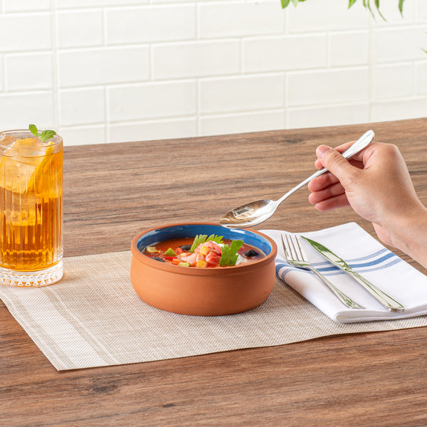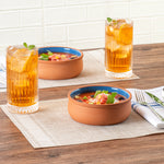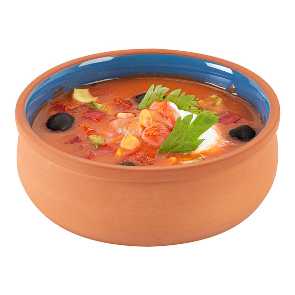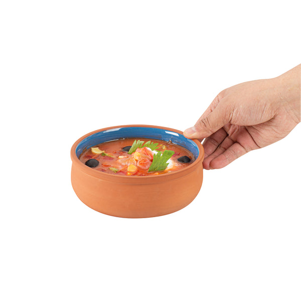 17 OZ TERRACOTTA CAZUELA BOWL - BLUE GLAZED INTERIOR, OVEN-SAFE