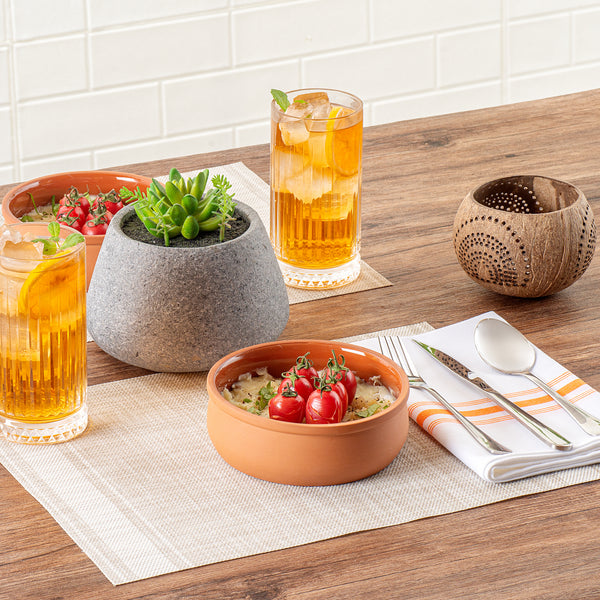 Experience the perfect blend of functionality and elegance with our Terra Tek 17-ounce Terracotta Cazuela Bowls. These recyclable cazuela bowls, crafted from durable terracotta, are designed to withstand the rigors of daily use and still retain their premium appearance. With their brown glazed interior, these greaseproof glazed bowls add a pop of color and sophistication to your food presentation. These cooking bowls are oven-ready and are perfect for baking and serving a variety of dishes, enhancing your kitchen's versatility. Plus, these microwave cooking bowls let you conveniently heat your meals, ensuring they are served at the perfect temperature every time. Freezable and dishwashable, these gourmet kitchen bowls simplify your food preparation and clean-up process, making them a must-have in any busy kitchen. These terracotta cazuelas have a generous capacity of 17 ounces, ideal for serving hearty portions of your culinary creations. Measuring 5.75 inches in diameter by 2 inches in height, these terracotta cazuela bowls are compact yet spacious, making them a practical choice for any foodservice establishment. Sold in a 10 count box.
