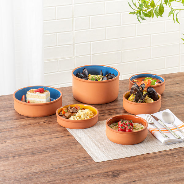 17 OZ TERRACOTTA CAZUELA BOWL - BROWN GLAZED INTERIOR, OVEN-SAFE