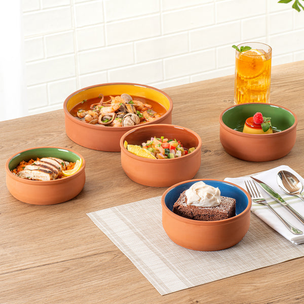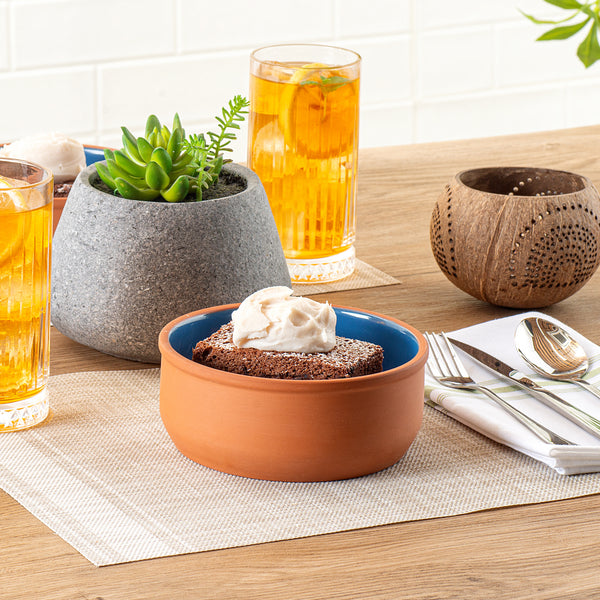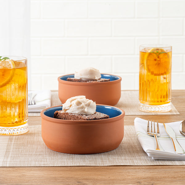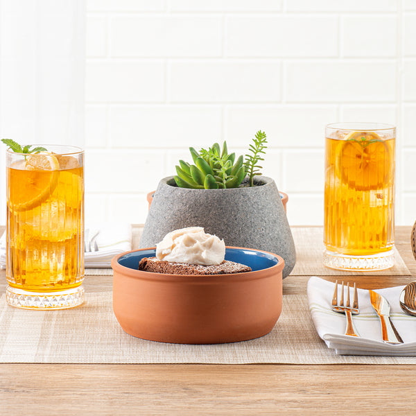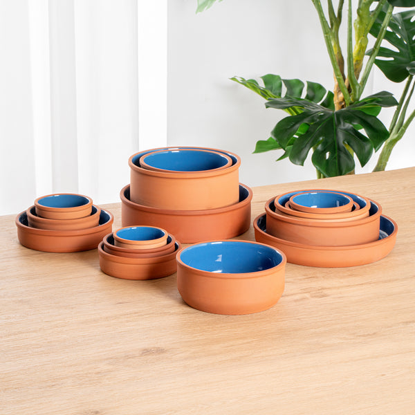 27 OZ TERRACOTTA CAZUELA BOWL - BLUE GLAZED INTERIOR, OVEN-SAFE
