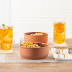 Enhance your culinary presentation with versatile terracotta bowls. The Terra Tek Glazed Interior Cazuela Bowl is designed with a 6.3-inch diameter, providing an ideal canvas for authentic tapas dishes. Featuring a brown glazed terracotta bowl finish, it offers a non-stick surface that enhances the presentation of meals and simplifies food release. Its dishwashable design saves time on cleaning, making it a practical choice for busy kitchens. With a freezer-safe construction, this tapas serving bowl allows for storing prepared dishes conveniently, ensuring efficient kitchen operations. The durable terracotta build withstands high temperatures, making it perfect for both oven and microwave use. Add a touch of tradition to your dining experience while enjoying the functional benefits of this versatile piece. Each order includes 2 Terra Tek Glazed Interior Cazuela Bowls.