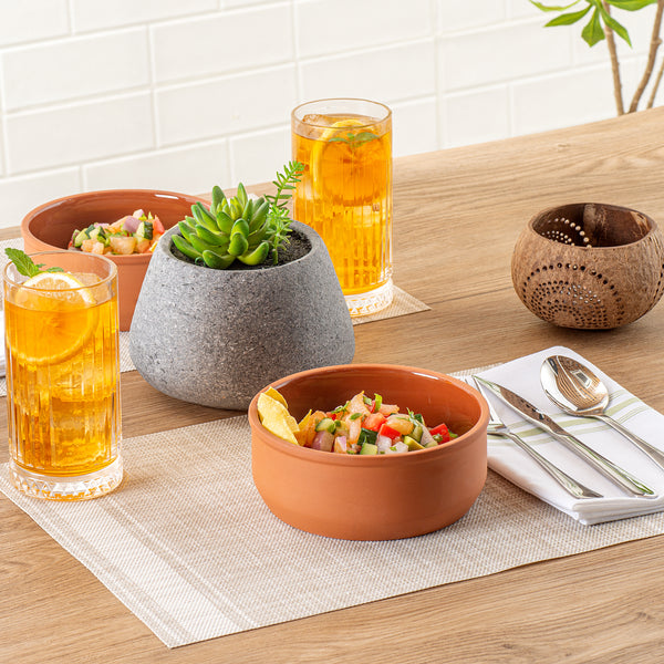 27 OZ TERRACOTTA CAZUELA BOWL - BROWN GLAZED INTERIOR, OVEN-SAFE