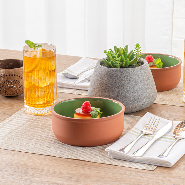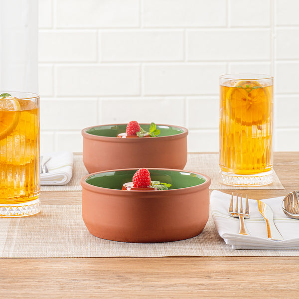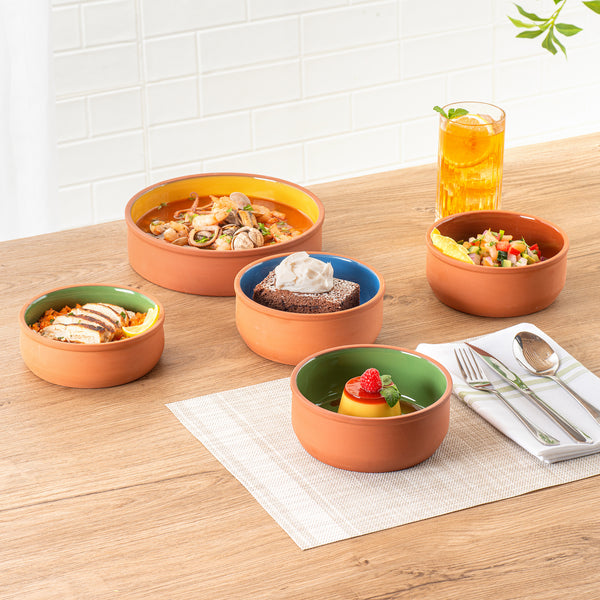 27 OZ TERRACOTTA CAZUELA BOWL - GREEN GLAZED INTERIOR, OVEN-SAFE