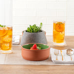 Bring traditional elegance to your culinary creations with our Terra Tek 27-ounce Terracotta Cazuela Bowls. Crafted from durable terracotta, these recyclable cazuela bowls are built to withstand the rigors of any commercial kitchen, making them a must-have at restaurants. The interior of these cooking bowls is glazed in a vibrant green, adding a pop of color that will enhance the presentation of your dishes. These greaseproof glazed bowls are oven-ready, allowing you to create baked entrees and desserts directly in the bowl. Microwavable and freezable, these versatile cooking bowls can seamlessly transition from freezer to microwave and then directly to the table, reducing the need for multiple dishware. Easy to clean, these gourmet kitchen bowls are dishwashable, making cleanup a breeze. With a generous 27-ounce capacity and measuring 6.25 inches in diameter by 2.5 inches in height, these terracotta cazuelas are perfect for portion control without compromising presentation. Sold in a 10 count box.