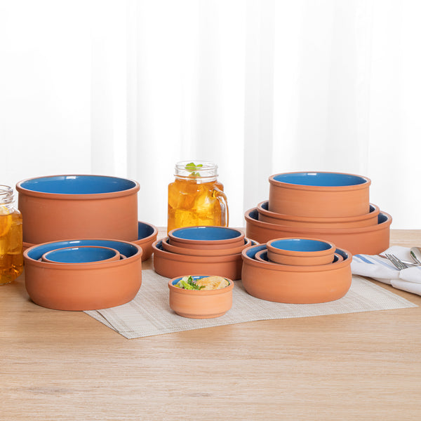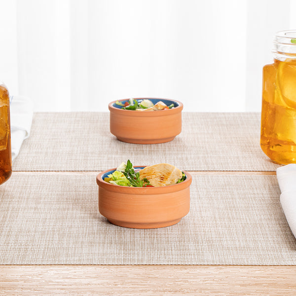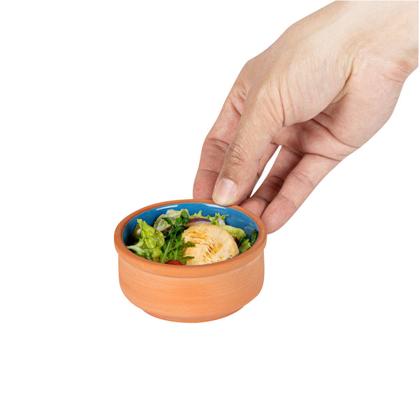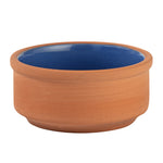 3 OZ TERRACOTTA CAZUELA BOWL - BLUE GLAZED INTERIOR, OVEN-SAFE