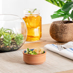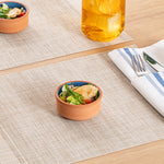 Elevate your culinary creations with our Terra Tek 3-ounce Terracotta Cazuela Bowls. Crafted from durable terracotta, these recyclable cazuela bowls offer a long-lasting and sustainable solution for your kitchen needs. Showcasing a beautiful blue glazed interior, these greaseproof glazed bowls add an elegant touch to your food presentation. These oven-ready cooking bowls, designed to withstand high temperatures, effortlessly transition from cooking to serving. Simplify meal prep with these microwavable cooking bowls, perfect for reheating and cooking in minutes. Keep your dishes fresh and ready to serve, as these gourmet kitchen bowls are freezable and microwavable. Clean-up is a breeze with these dishwashable cazuela bowls, making them a practical choice for any foodservice establishment. With a 3-ounce capacity, these reusable terracotta cazuelas are ideal for serving individual portions and measure 3 inches in diameter by 1.5 inches in height. Sold in a 10 count box.