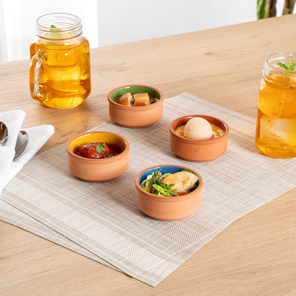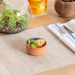 Elevate your culinary creations with our Terra Tek 3-ounce Terracotta Cazuela Bowls. Crafted from durable terracotta, these recyclable cazuela bowls offer a long-lasting and sustainable solution for your kitchen needs. Showcasing a beautiful blue glazed interior, these greaseproof glazed bowls add an elegant touch to your food presentation. These oven-ready cooking bowls, designed to withstand high temperatures, effortlessly transition from cooking to serving. Simplify meal prep with these microwavable cooking bowls, perfect for reheating and cooking in minutes. Keep your dishes fresh and ready to serve, as these gourmet kitchen bowls are freezable and microwavable. Clean-up is a breeze with these dishwashable cazuela bowls, making them a practical choice for any foodservice establishment. With a 3-ounce capacity, these reusable terracotta cazuelas are ideal for serving individual portions and measure 3 inches in diameter by 1.5 inches in height. Sold in a 2 count box.