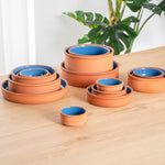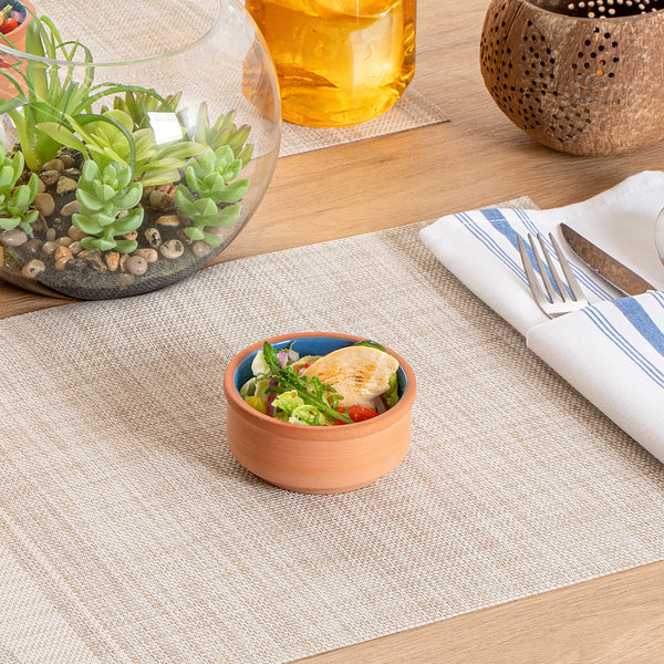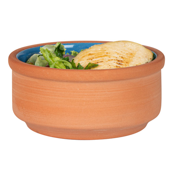 3 OZ TERRACOTTA CAZUELA BOWL - BLUE GLAZED INTERIOR, OVEN-SAFE