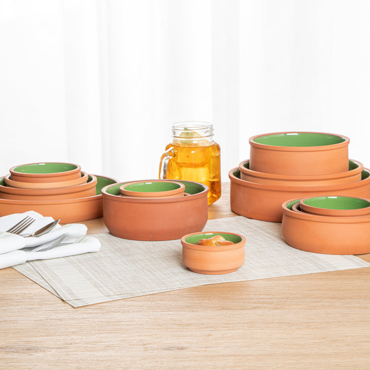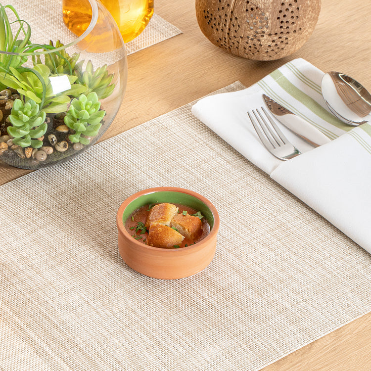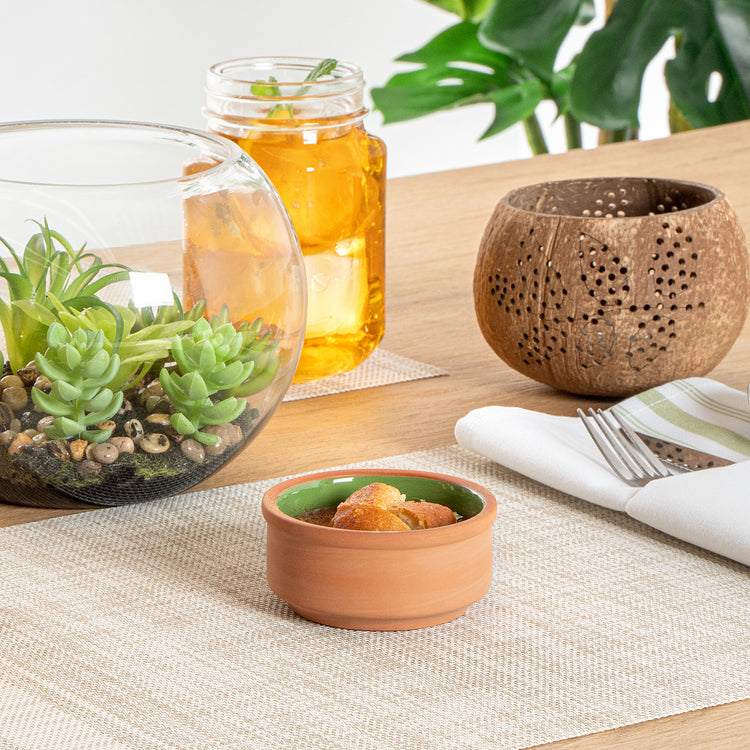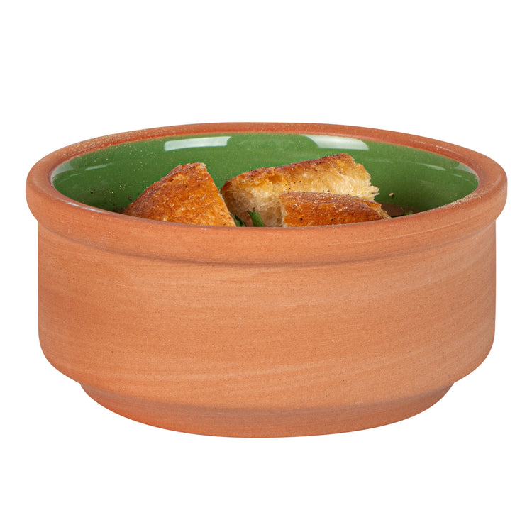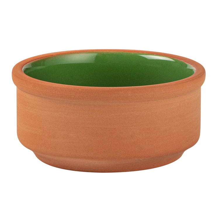 3 OZ TERRACOTTA CAZUELA BOWL - GREEN GLAZED INTERIOR, OVEN-SAFE