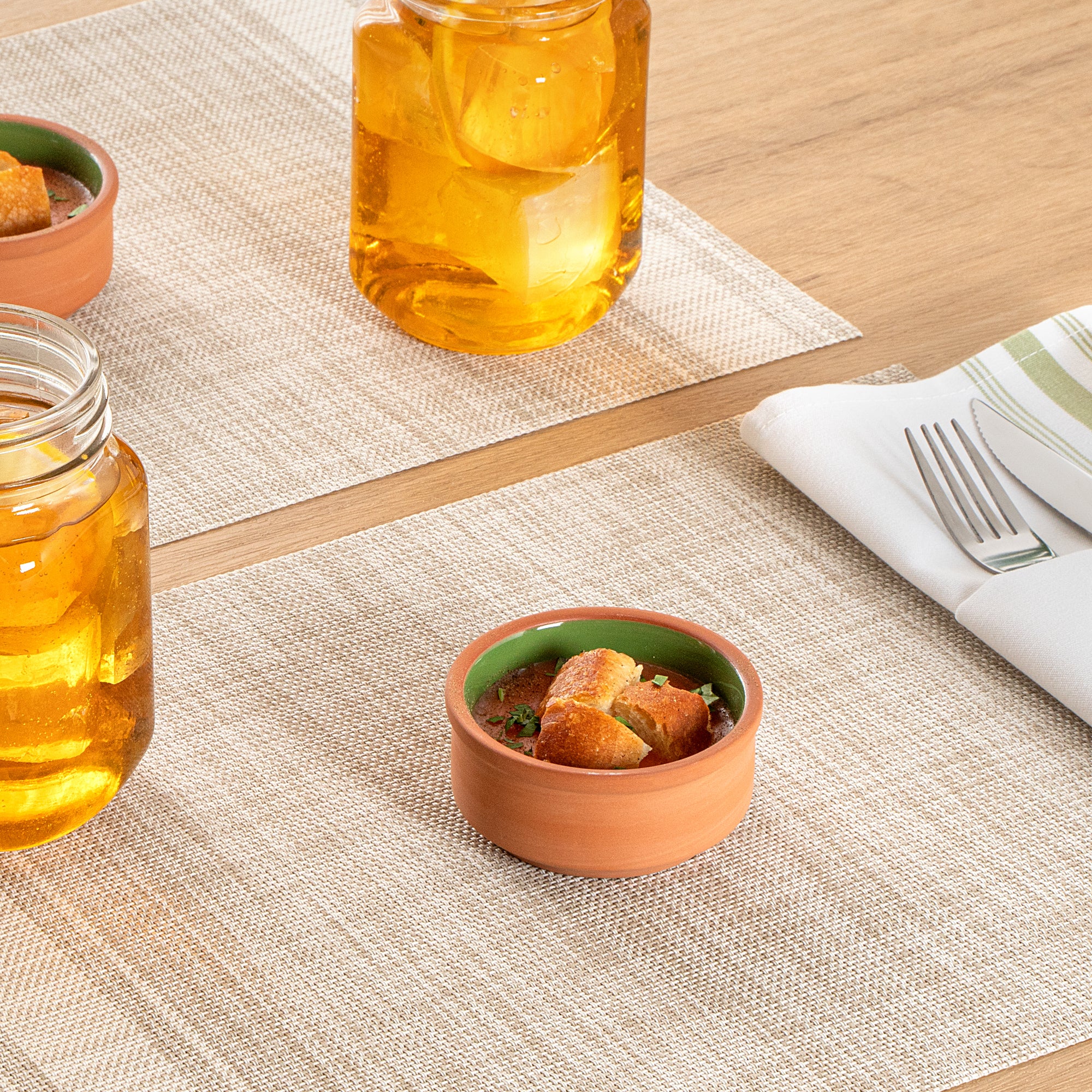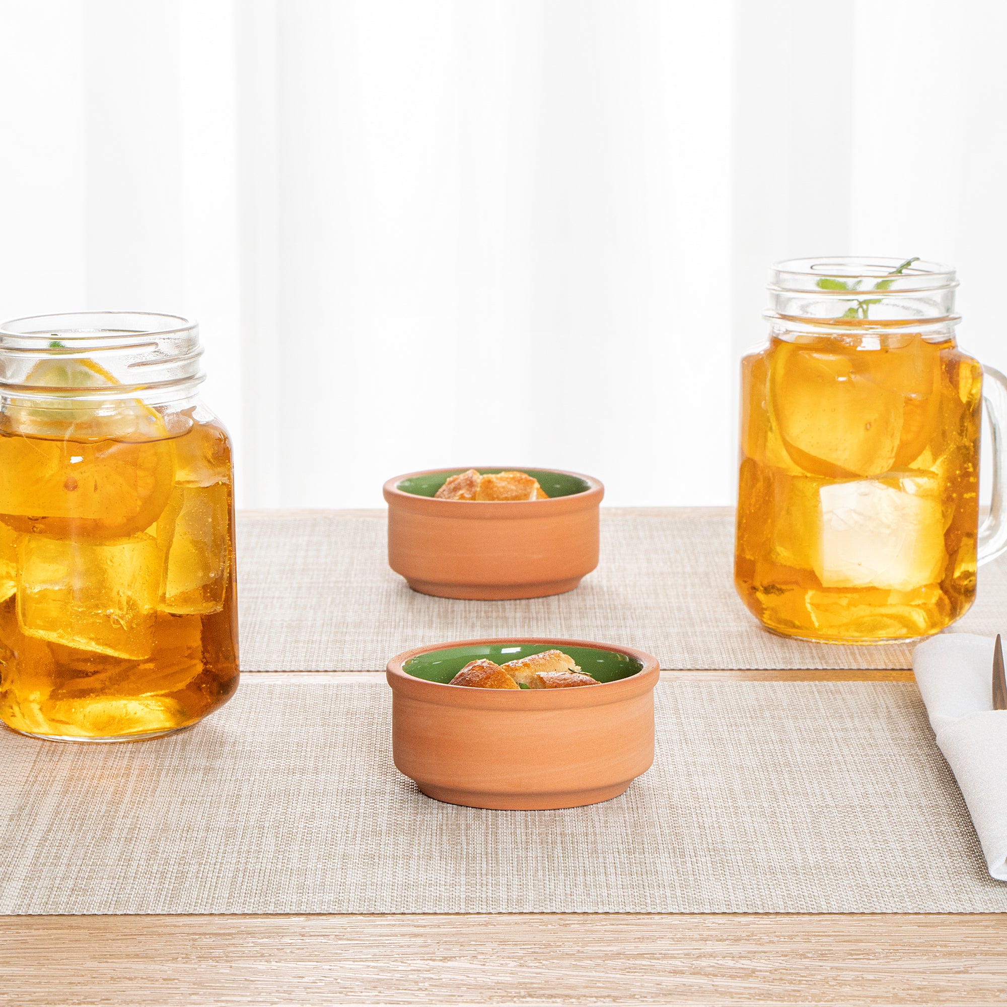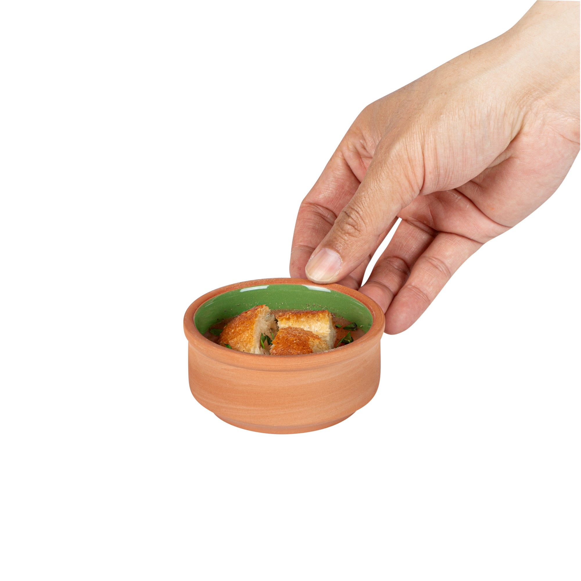 3 OZ TERRACOTTA CAZUELA BOWL - GREEN GLAZED INTERIOR, OVEN-SAFE