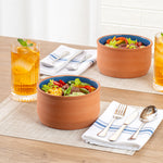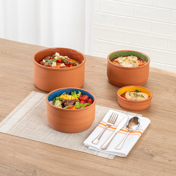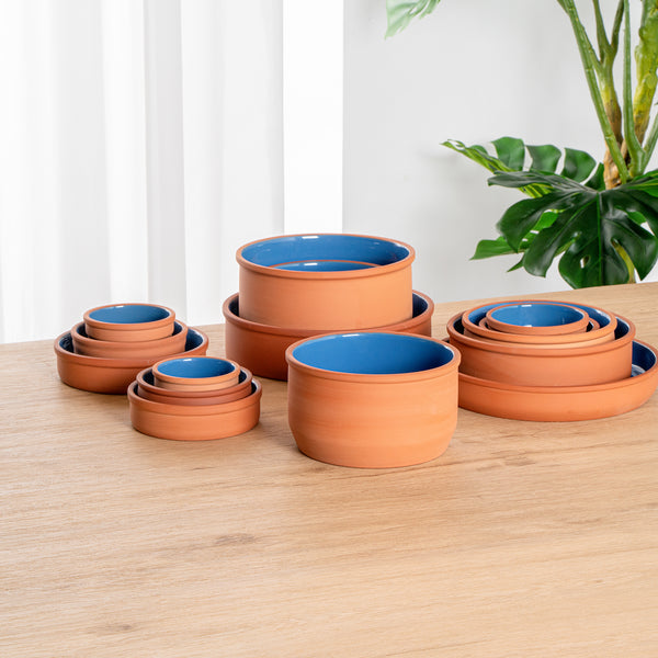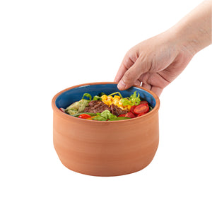 34 OZ TERRACOTTA CAZUELA BOWL - BLUE GLAZED INTERIOR, OVEN-SAFE