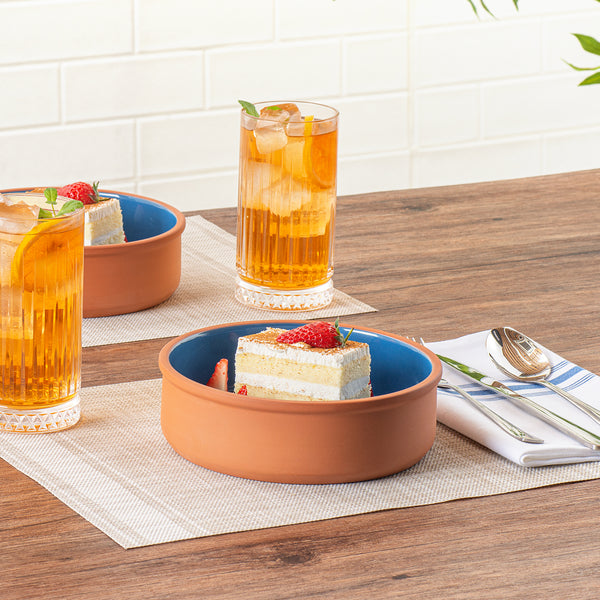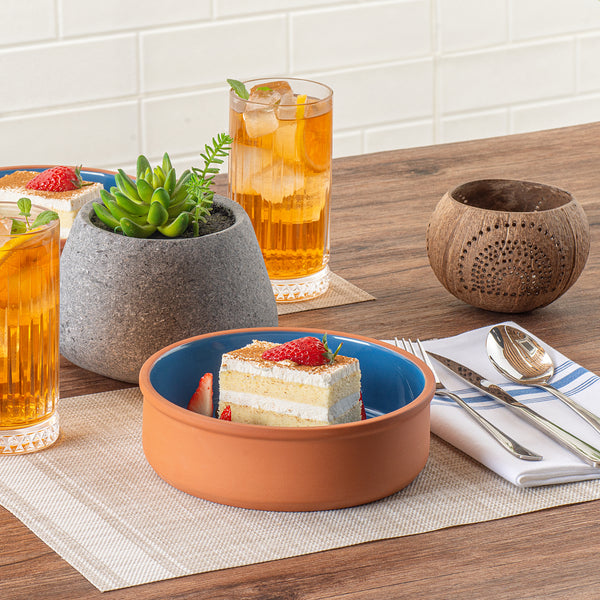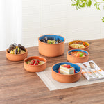 34 OZ TERRACOTTA CAZUELA BOWL - BLUE GLAZED INTERIOR, OVEN-SAFE