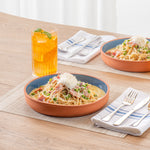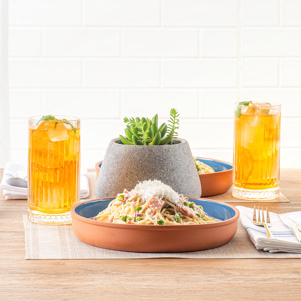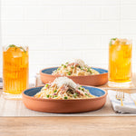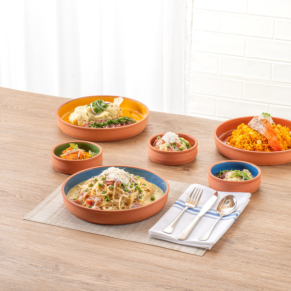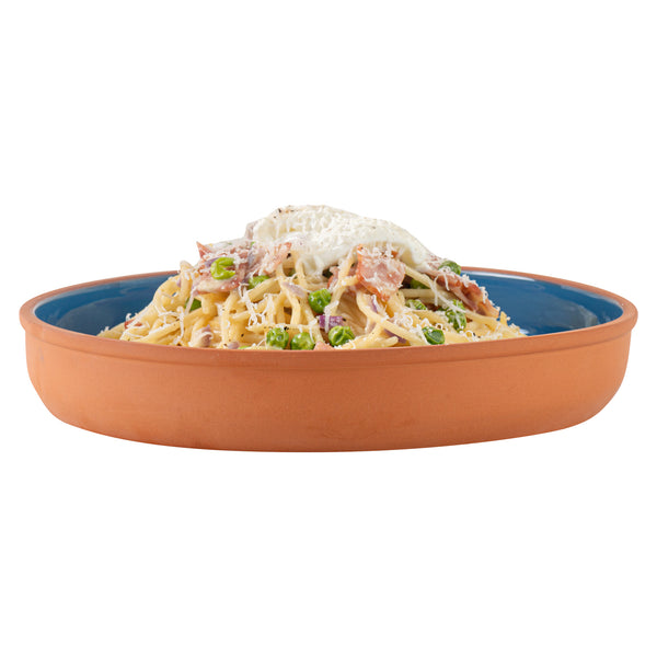Introduce a touch of rustic charm to your culinary creations with our Terra Tek 34-ounce Terracotta Cazuela Bowls. Crafted from durable terracotta, these recyclable cazuela bowls are designed to withstand the rigors of daily use in a busy kitchen. The blue glazed interior of these greaseproof glazed bowls adds an elegant touch, ensuring your dishes are as visually appealing as they are delicious. These cooking bowls are oven-ready, making them a versatile addition to any gourmet kitchen. For meals that require heating or reheating, these microwave cooking bowls offer convenience and efficiency. To freeze your signature soups or stews; these reusable terracotta bowls are freezable, ensuring you always have a ready meal on hand. Cleanup is a breeze with these dishwashable bowls, saving time and effort. With a generous capacity of 34 ounces, these blue greaseproof glazed bowls are perfect for hearty servings. These dishwashable bowls measure 9.25 inches in diameter by 1.5 inches in height, providing ample space for your culinary masterpieces. Sold in a 10 count box.